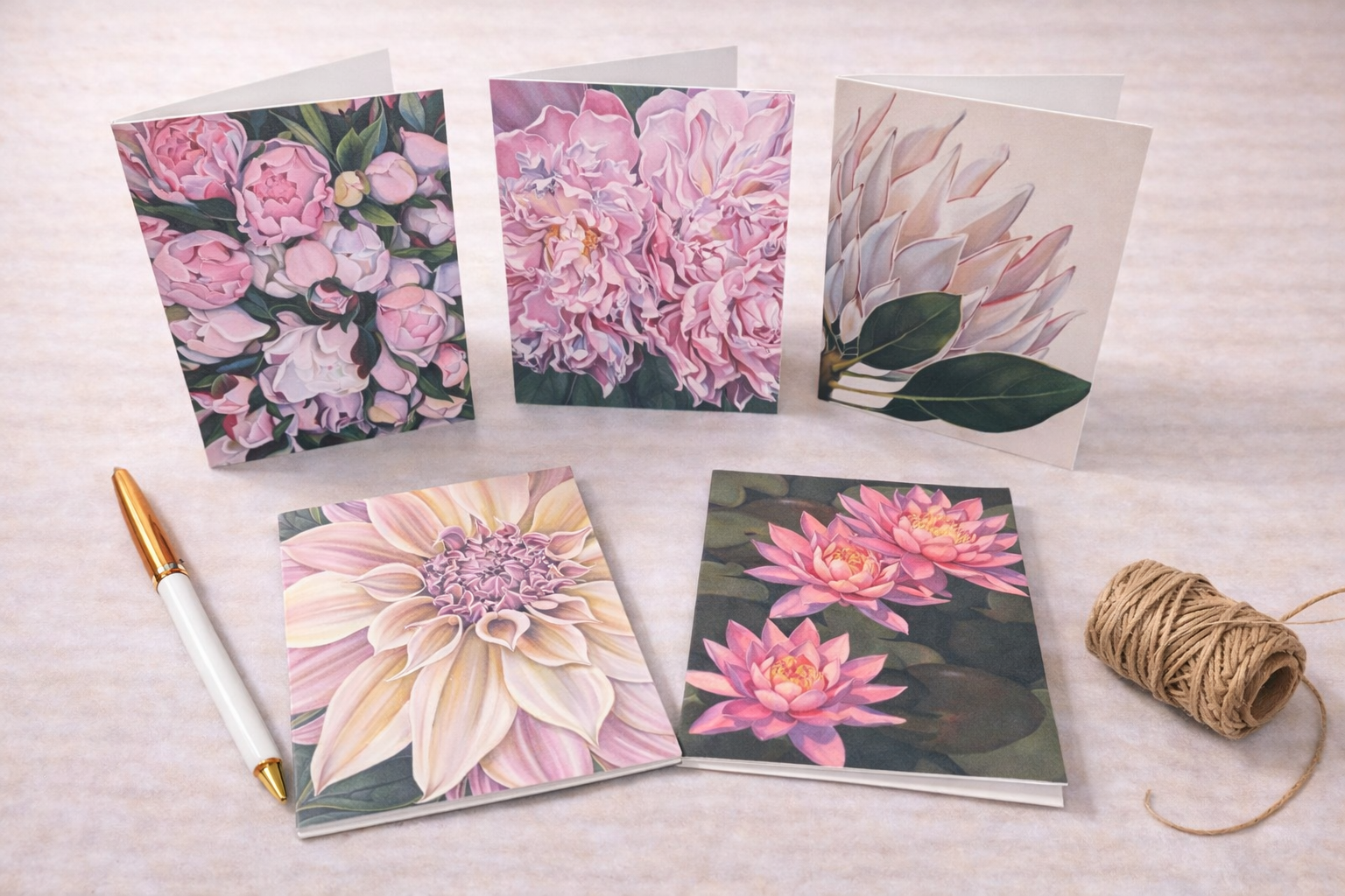 A softly curated collection of floral paintings in blush, petal pinks, and gentle neutrals. These cards are well suited for heartfelt notes, moments of encouragement, or everyday correspondence where a quieter beauty feels just right.